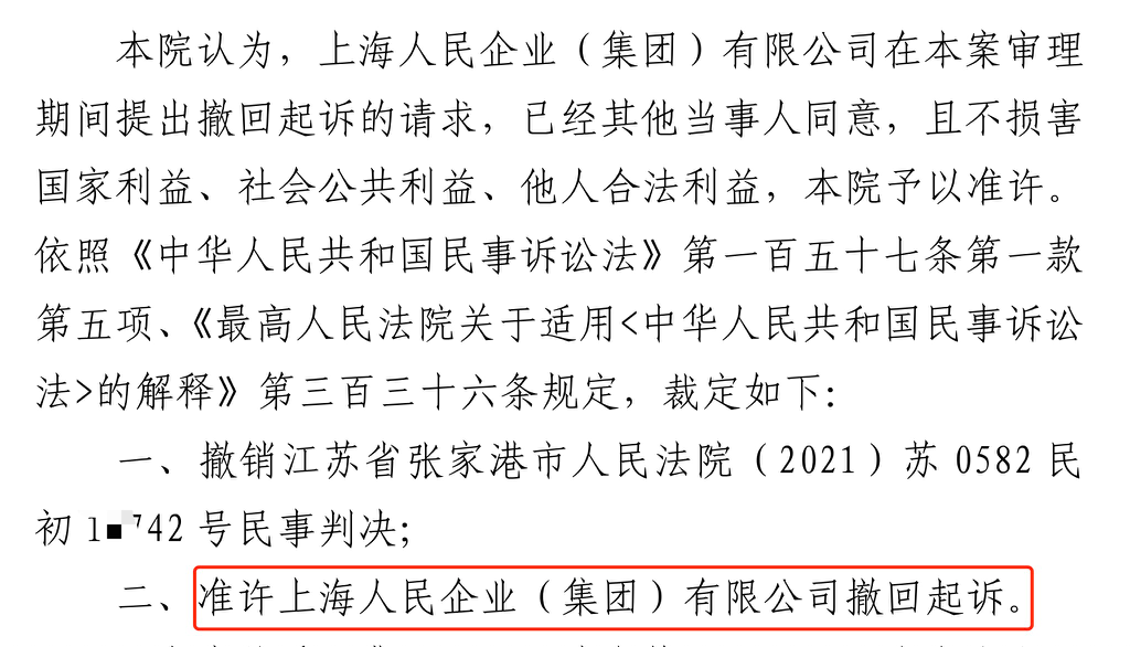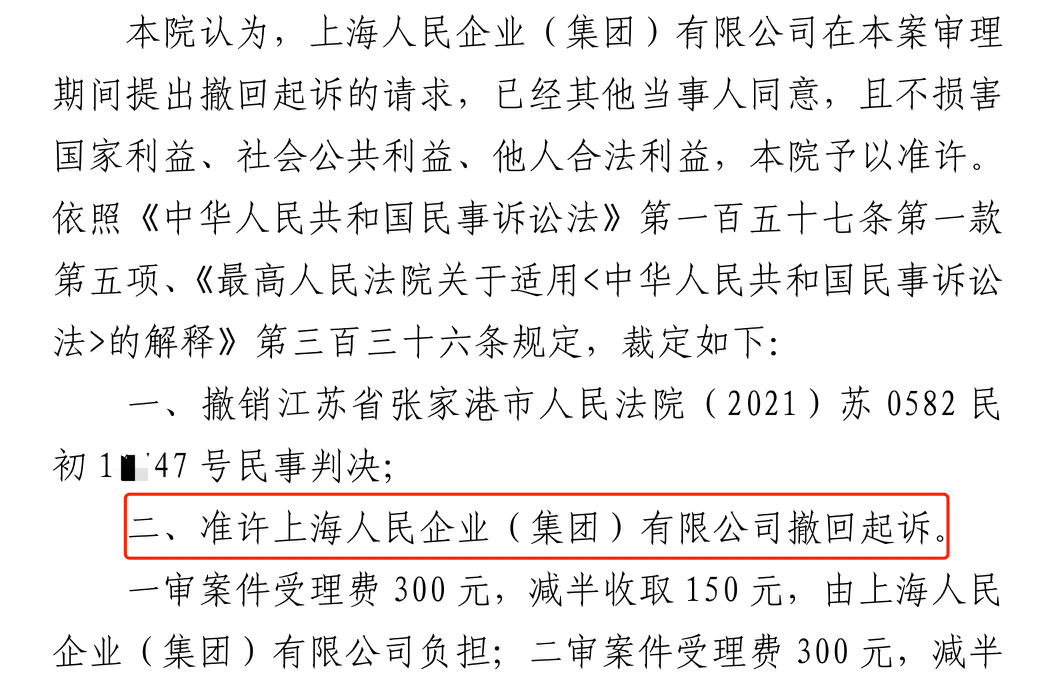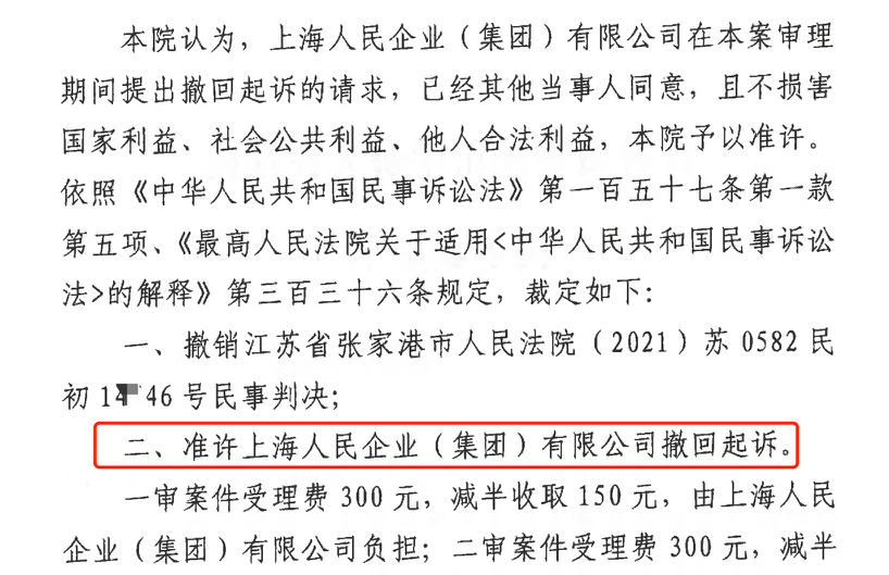 百色胜诉佳讯 | 人民企业系列案苏州六案上海人民公司撤诉